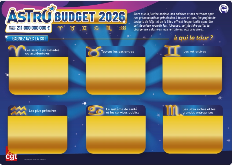 Alors que la justice sociale, nos salaires et nos retraites sont nos préoccupations principales à toutes et tous, les projets de budgets de l’État et de la Sécu offrent l’opportunité concrète soit de mieux répartir les richesses, soit de faire porter la charge aux salarié·es, aux retraité·es, aux précaires…