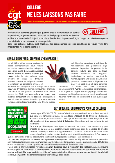 Dans nos collèges publics, déjà fragilisés, les conséquences sur nos conditions de travail vont être importantes. Ne laissons pas faire !