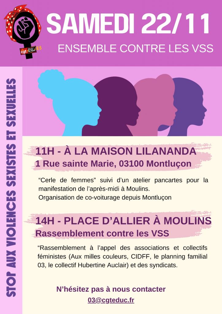 Journée internationale de lutte contre les VSS : 22 nov. 14H Moulins