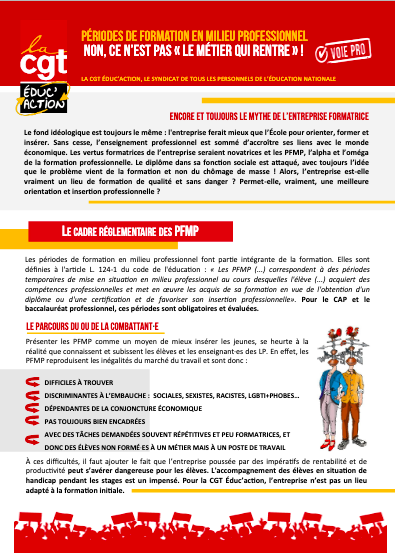 Le fond idéologique est toujours le même : l’entreprise ferait mieux que l’École pour orienter, former et insérer. Sans cesse, l’enseignement professionnel est sommé d’accroître ses liens avec le monde économique. Les vertus formatrices de l’entreprise seraient novatrices et les PFMP, l’alpha et l’oméga de la formation professionnelle. Le diplôme dans sa fonction sociale est attaqué, avec toujours l’idée que le problème vient de la formation et non du chômage de masse ! Alors, l’entreprise est-elle vraiment un lieu de formation de qualité et sans danger ? Permet-elle, vraiment, une meilleure orientation et insertion professionnelle ?