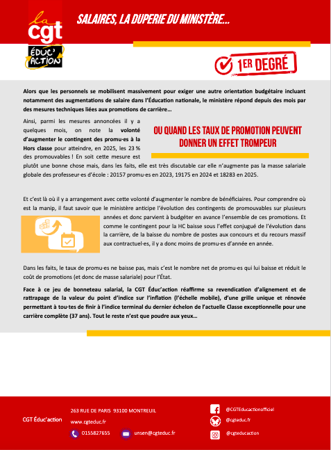 Alors que les personnels se mobilisent massivement pour exiger une autre orientation budgétaire incluant notamment des augmentations de salaire dans l’Éducation nationale, le ministère répond depuis des mois par des mesures techniques liées aux promotions de carrière…